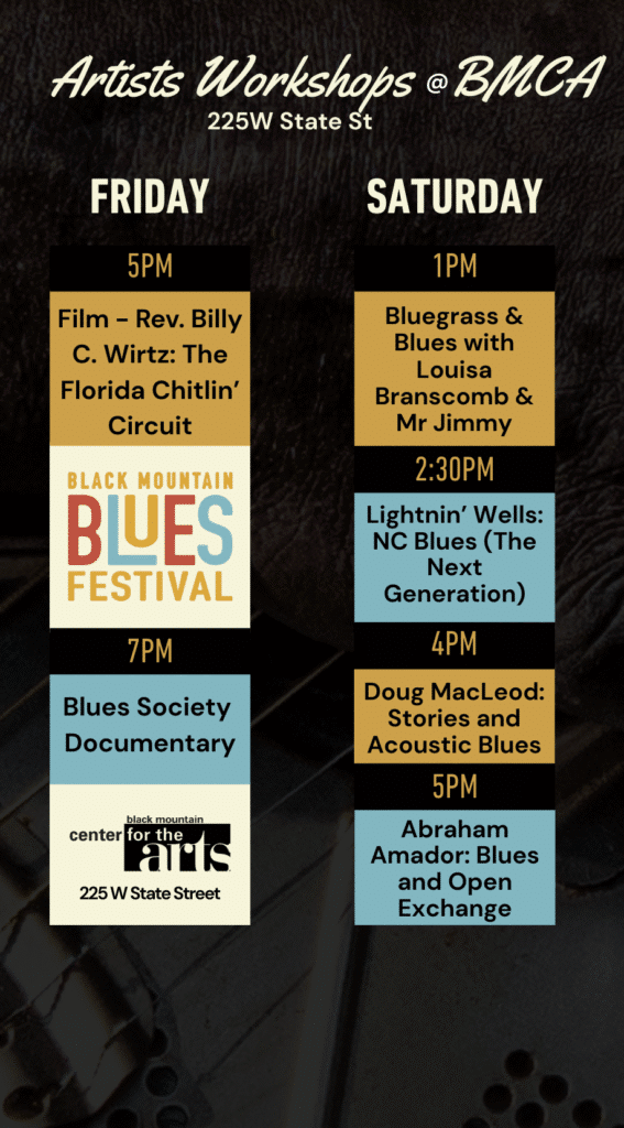 Hosted by Lightnin’ Wells, who performed with and had personal relationships with many of these artists, this workshop traces the journey of Piedmont blues from its roots in the 1930s and ’40s to its revival and innovation in the 1970s and beyond. Featuring stories and music from legends such as Etta Baker, John Dee Holeman, Big Boy Henry, Algia Mae Hinton, and George Higgs, it offers an insider’s look at the players and traditions that shaped this distinctive North Carolina sound.